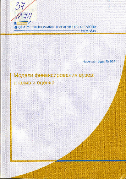 Модели финансирования вузов: анализ и оценка / Ред. С.А. Беляков. — Москва : ИЭПП, 2005. — 282 с.. — (Научные труды; N 93Р). — . Режим доступа к эл.ресурсу: http://www.iep.ru.
