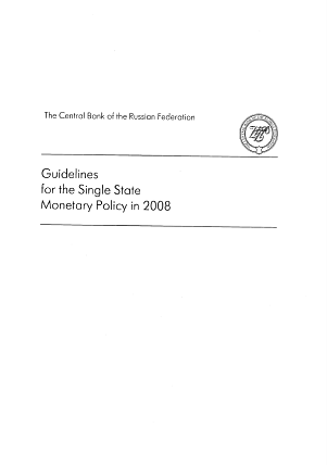Guidelines for the Single State Monetary Policy in 2008 / The Central Bank of the Russian Federation. — Москва : Bank of Russia, 2007. — 26 p.