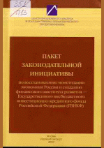 Пакет законодательной инициативы по восстановлению монетизации экономики России и созданию финансового института развития - Государственного внебюджетного инвестиционно-кредитного фонда Российской Федерации (ГВИКФ) : нормативный документ / Центр проблемного анализа и государственно-управленческого проектирования. — Москва : Научный эксперт, 2010. — 152 с.+ 1. — 60.97 р.