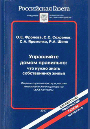 Управляйте домом правильно: что нужно знать собственнику жилья / О. Е. Фролова [и др.]; Некоммерческое партнерство "ЖКХ Контроль". — Москва : Редакция "Российской газеты", 2017. — 176 с.. — (Библиотечка "Российской газеты"; вып. № 20).