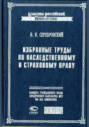 Серебровский, В.И. Избранные труды по наследственному и страховому праву / В. И. Серебровский. — Изд. 2-е, испр.. — 2003. — 558 с.. — Библиогр.: с. 548-553. — ISBN 5-89398-011-5 : 780.00 р.
