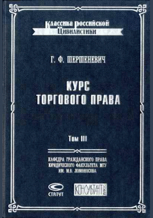 - 1. Шершеневич, Г.Ф. Курс торгового права / Г. Ф. Шершеневич. — 2005. — 480 с.. — ISBN 5-8354-0142-6.