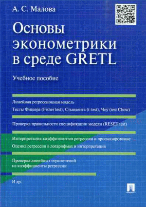 Малова, А.С. Основы эконометрики в среде GRETL : учебное пособие для вузов / А. С. Малова. — Москва : Проспект, 2017. — 112 с.: ил.. — Библиогр.: с. 111. — ISBN 978-5-392-23231-4 : 330.00 р.