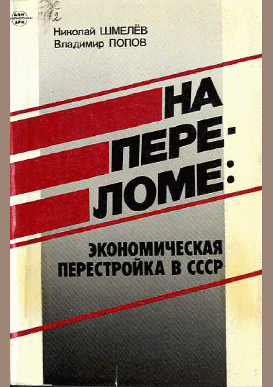 Шмелев, Н.П. На переломе: экономическая перестройка в СССР / Н. П. Шмелев, В. В. Попов. — Москва : Издательство Агентства печати "Новости", 1989. — 399 с.: ил.-16. — (Библиотечка АПН). — 2.40 р.