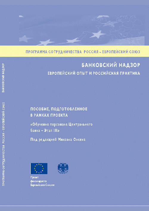 Банковский надзор: европейский опыт и российская практика : пособие, подготовленное в рамках проекта "Обучение персонала Банка России. Этап III": перевод с английского / Центральный банк Российской Федерации [и др.]; редактор М. Олсен. — Москва : Европейская Комиссия, 2005. — XIV,356 с.: табл., граф.. — (Программа сотрудничества Россия - Европейский Союз). — ISBN 92-79-00184-1.
