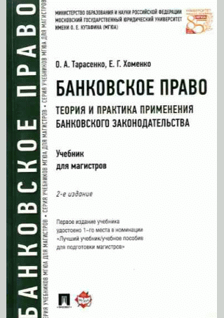Тарасенко, О.А. Банковское право : теория и практика применения банковского законодательства: учебник для магистров / О. А. Тарасенко, Е. Г. Хоменко; Московский государственный юридический университет им. О.Е. Кутафина. — Изд. 2-е, перераб. и доп.. — Москва : Проспект, 2017. — 365 с.. — (Серия учебников МГЮА для магистров). — ISBN 978-5-392-23327-4 : 650.00 р.