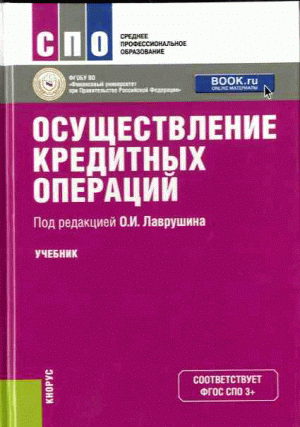 Осуществление кредитных операций : учебник / Финансовый университет при Правительстве Российской Федерации; редактор О. И. Лаврушин. — Москва : КноРус, 2017. — 241 с.. — (Среднее профессиональное образование). — Библиогр. в конце глав. — ISBN 978-5-406-05654-7 : 767.00 р.