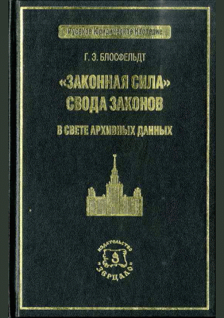 Блосфельдт, Г.Э. "Законная сила" Свода законов в свете архивных данных / Г. Э. Блосфельдт. — 2006. — 269 с.. — ISBN 978-5-8078-0130-2 : 650.00 р.
