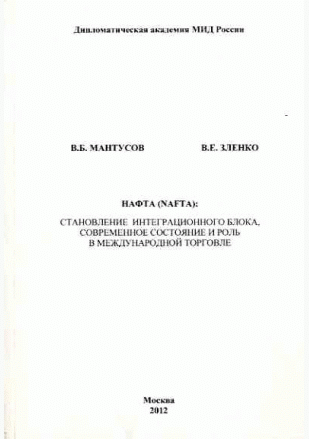 Мантусов, В.Б. НАФТА (NAFTA): становление интеграционного блока, современное состояние и роль в международной торговле / В. Б. Мантусов, В. Е. Зленко; Дипломатическая академия МИД России. — Москва : Восток-Запад, 2012. — 146 с.: ил.. — Библиогр.: с. 144-145. — ISBN 978-5-478-01345-5 : 250.00 р.