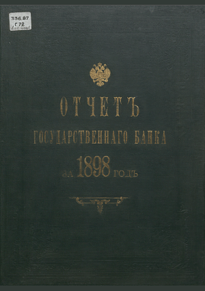 Особые приложения к Отчету Государственного банка за 1898 год. — Санкт-Петербург : Типография Государственного банка, 1899. — 93 с.+ 46с.. — . Напечатано по старой орфографии.. Содержание : Ведомость о перечислениях в разменный капитал из оборотного и обратно (стр.4-33); Ведомость о числе и сумме учтенных в 1898 году учреждениями Государственного Банка векселей с распределением по местам назначенного по ним платежа (стр.36-55); Ведомость о суммах, переведенных в Конторы и Отделения Государственного Банка по переводным билетам и телеграммам с распределением по месту платежа за 1898 год (стр.57-85); Отчет по ликвидации Александринского Тульского банка за 1898 год (стр.87-93); Баланс Государственного Банка к 1 января 1899 года (стр.39-42).