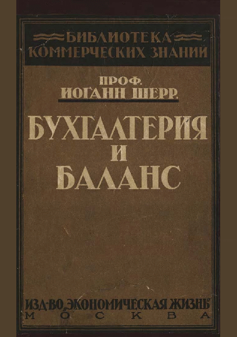 Шерр, И.Ф. Бухгалтерия и баланс / И. Ф. Шерр; перевод с немецкого С. И. Цедербаум; редактор, автор примечаний Н. С. Лунский. — Москва : Экономическая жизнь, 1925. — XVI, 575 с.. — (Библиотека коммерческих знаний).