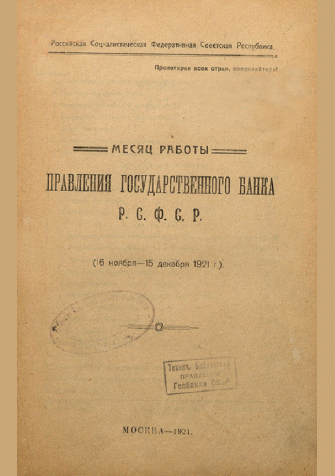 Отчет Государственного банка за 1921 год (месяц работы Правления, 16 ноября-15 декабря)