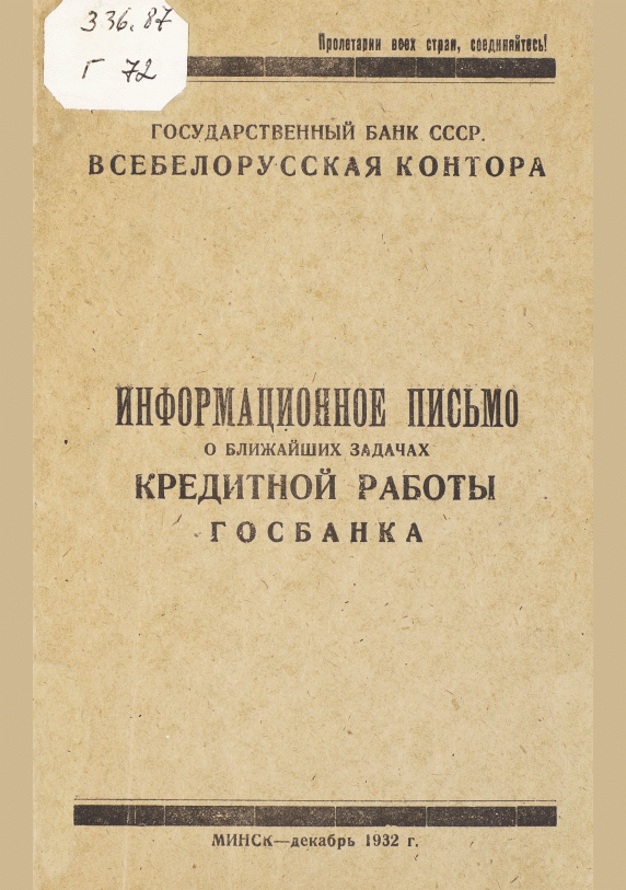 Информационное письмо о ближайших задачах кредитной работы Госбанка. — Минск, 1932. — 22 с.