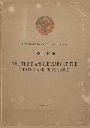The Third Anniversary of the State Bank Note Issue 1922-28.XI.1925 / The State Bank of the U.S.S.R.. — Москва : Гознак, 1925. — 37 p.: обр- 2 л., граф.- 3 л.. — 1000 р. : 30.00.