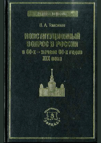 Томсинов, В.А. Конституционный вопрос в России в 60-х - начале 80-х годов XIX века / В. А. Томсинов. — Москва : Зерцало, 2013. — 308 с.. — (Великие реформы). — ISBN 978-5-8078-0200-2 : 650.00 р.
