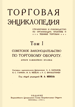 Советское законодательство по торговому обороту (очерк важнейших правил) / Сост. А.А. Баранов, Сост. Я.С. Гликин, Сост. Р.С. Фильштинер, Ред. М.А. Мебель. — 1925. — XI, 315 с.: табл.-1.