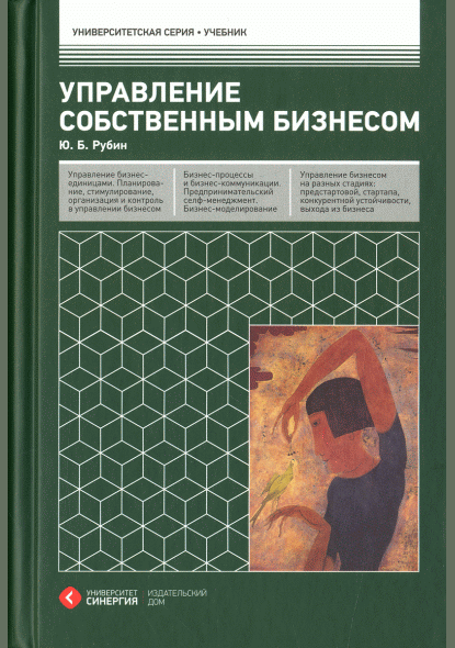 Рубин, Ю.Б. Управление собственным бизнесом : учебник для вузов / Ю. Б. Рубин. — 15-е изд., стер.. — Москва : Синергия, 2018. — 976 с.: ил.. — (Университетская серия). — Предм. указ.: с. 939-954. — ISBN 978-5-4257-0345-3 : 100.00 р.