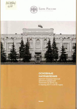 Основные направления единой государственной денежно-кредитной политики на 2016 год и период 2017 и 2018 годов / Центральный банк Российской Федерации. — Москва : Банк России, 2015. — 62 с.: граф., табл.