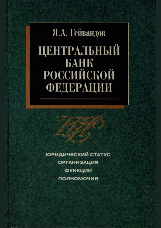 Гейвандов, Я.А. Центральный банк Российской Федерации : Юридический статус, организация, функции, полномочия: Учебное пособие для вузов / Я.А. Гейвандов. — Москва : МНИМП, 1997. — 208 с.. — ISBN 5-88720-013-8 : 32000.00 р.