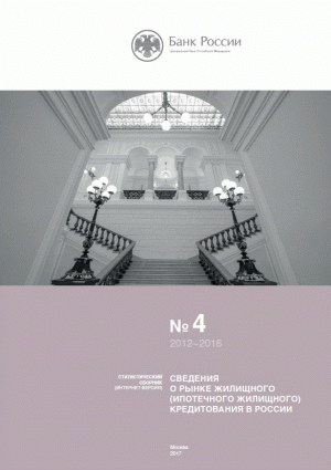 Сведения о рынке жилищного (ипотечного жилищного) кредитования в России. № 4. 2012-2016 гг. : статистический сборник (интернет-версия) / Центральный банк Российской Федерации, Департамент статистики и управления данными. — Москва : Банк России, 2017. — 66 с.: цв. ил., табл.