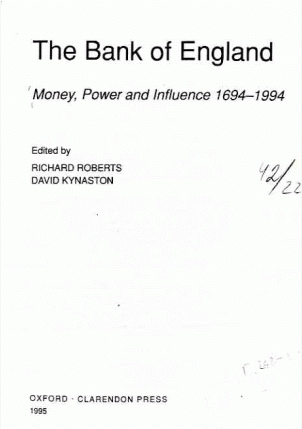 The Bank of England : money, power and influence, 1694-1994 / editors: R. Roberts, D. Kynaston. — Oxford : Clarendon Press, 1995. — 316 p.. — Bibliography: p. 298-304. — ISBN 0-19-828952-9.