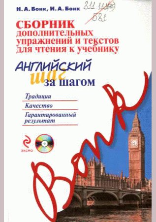 Бонк, Н.А. Сборник дополнительных упражнений и текстов для чтения к учебнику "Английский шаг за шагом" / Н.А. Бонк, И.А. Бонк. — Москва : Эксмо, 2015. — 320 с.+ 1. — ISBN 978-5-699-73125-1 : 279.05 р.