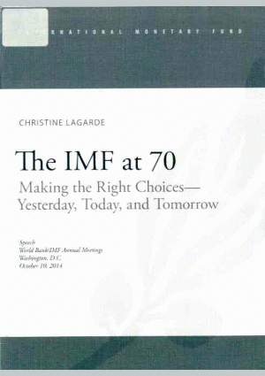 Lagarde, C. The IMF at 70: Making the Right Choices - Yesterday, Today, and Tomorrow : speech World Bank/ IMF Annual Meetings, Washington, October 10, 2014 / C. Lagarde. — Washington : IMF, 2014. — 8 p.. — ISBN 978-1-49837-836-9.