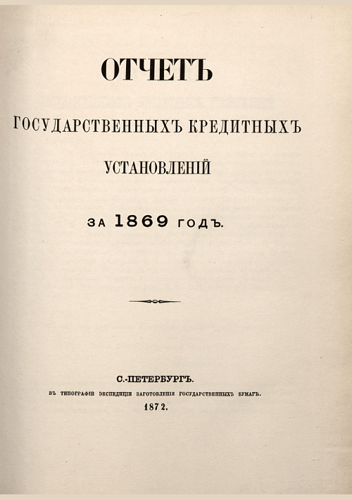 - 1. Отчет государственных кредитных установлений за 1870 год. — Санкт-Петербург : Типография Майкова, в доме Министерства финансов, на Дворцовой площади, 1873. — 45 с.