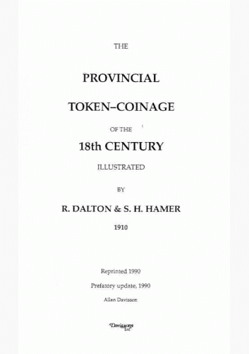 Dalton, R. The Provincial Token-Coinage of the 18th Century : Illustrated 1910-1918 / R. Dalton, S. H. Hamer. — Reprinted 1990. — USA : Cold Spring, 1996. — 567 p.: il.. — General Index: P. 558-567.