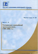 Цухло, С.В. Конкуренция в российской промышленности (1995-2002 г.) / С.В. Цухло; Институт экономики переходного периода. — М., 2003. — 106 с.. — (Научные труды; N 57Р). — Содержание : Предисловие ; Проблемы измерения конкуренции ; Оценка потенциала конъюнктурных опросов при сборе и анализе данных по проблемам конкуренции ; Методика построения оценок конкуренции на основе опросов ; Оценка уровня конкуренции на рынках сбыта российских промышленных предприятий в 1995-2002 г. ; Влияние конкуренции на российские промышленные предприятия ; Библиография ; Приложение 1. Анкета конъюнктурного опроса ИЭПП.