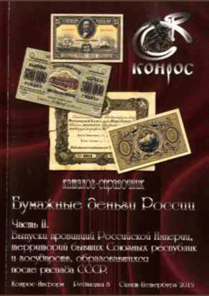Бумажные деньги России. Ч. II. Выпуски провинций Российской Империи, территорий бывших Союзных республик и государств, образовавшихся после распада СССР : каталог-справочник: в 2-х ч. / ред. В. Е. Семенов. — Санкт-Петербург : Конрос-Информ, 2015. — 80 с.: цв. ил.. — Библиогр.: с. 80. — ISBN 978-5-94088-029-5 : 445.50 р.