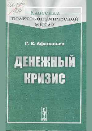 Афанасьев, Г.Е. Денежный кризис / Г. Е. Афанасьев. — Репринт. изд.. — Москва : URSS, 2014. — 232 с.. — (Классика политэкономической мысли). — . Напечатано по старой орфографии.. — ISBN 978-5-9710-1189-7 : 394.30 р.