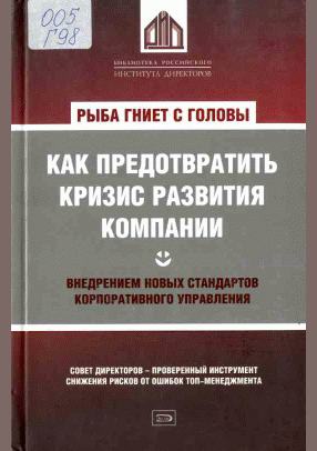 Гэррэтт, Б. Рыба гниет с головы: как предотвратить кризис развития компании внедрением новых стандартов корпоративного управления : пер. с англ. / Б. Гэррэтт. — Москва : Эксмо, 2008. — 297 с.. — (Библиотека Российского института директоров). — ISBN 978-5-699-22834-8 : 725.00 р.