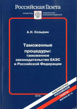 Козырин, А.Н. Таможенные процедуры: таможенное законодательство ЕАЭС и Российской Федерации / А. Н. Козырин. — Москва : Редакция "Российской газеты", 2016. — 176 с.. — (Библиотечка "Российской газеты"; вып. № 14).