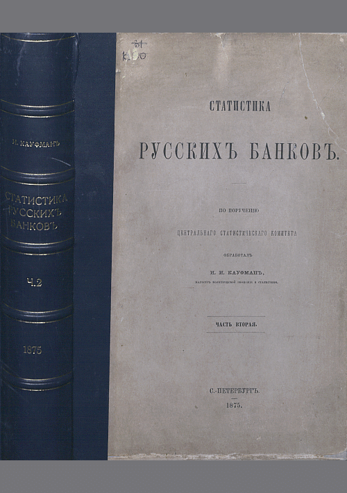 Статистика русских банков. Ч. 2 : по поручению Центрального статистического комитета / обраб. И. И. Кауфман. — Прижизн. изд.. — СПб., 1875. — LIV,545 с.. — (Статистический временник Российской Империи; Вып. 11 (отдельные оттиски)). — . Напечатано по старой орфографии.