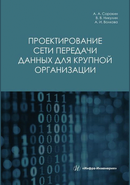 Сорокин, А.А. Проектирование сети передачи данных для крупной организации : учебное пособие для вузов / А. А. Сорокин, В. В. Никулин, А. И. Волкова. — 3-е изд., испр. и доп.. — МоскваВологда : Инфра-Инженерия, 2023. — 152 с.: граф., ил., цв. ил., табл.. — Библиогр.: с. 147-149. — ISBN 978-5-9729-1226-1.