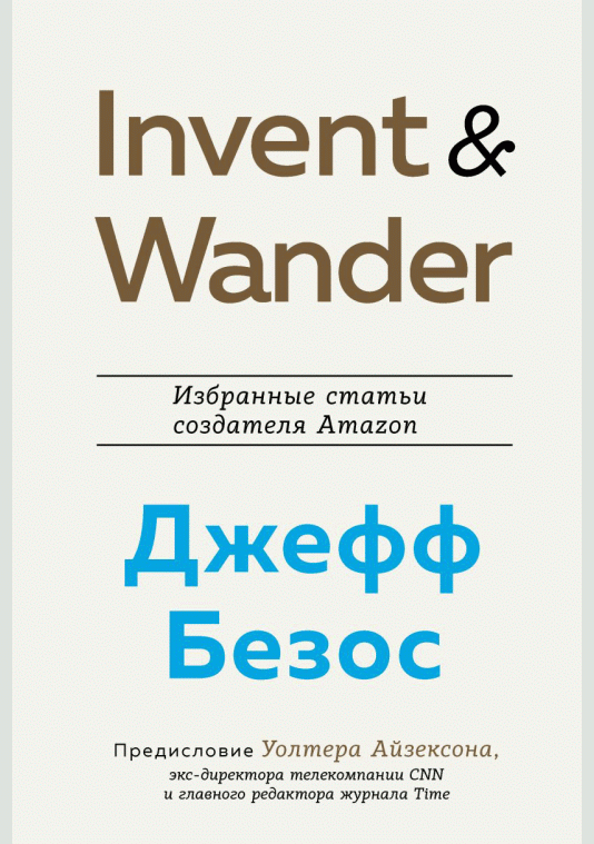 Ежегодные послания акционерам, тексты самых пронзительных выступлений и интервью Джеффа Безоса, собранные в книгу гениальным биографом Уолтером Айзексоном. Эта книга предоставляет каждому, кто ее прочтет, уникальную возможность проследить эволюцию идей самого богатого человека на планете, узнать принципы успеха и философию, которыми руководствовался Джефф Безос при создании и управлении Amazon и Blue Origin. Invent and wander - мастер-класс по стратегии и реализации бизнеса, переосмысление сегодняшних - и, что более важно, завтрашних проблем, и призыв никогда не останавливаться на достигнутом. Что на самом деле означает быть одержимым клиентами, каков секретный ингредиент инноваций, чему нас научила пандемия Covid-19 - книга охватывает широкий круг тем в сфере бизнеса и политики. Узнайте, что привело к успеху одного из самых важных новаторов нашего времени.
