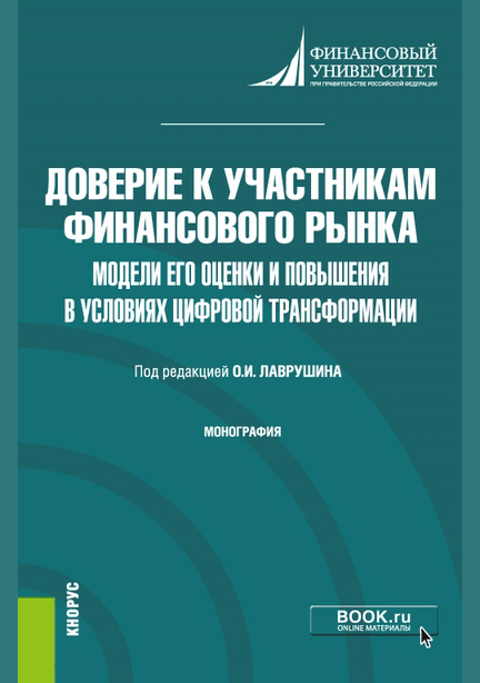 Доверие к участникам финансового рынка : модели его оценки и повышения в условиях цифровой трансформации : монография / Финансовый университет при Правительстве Российской Федерации; редактор О. И. Лаврушин. — Москва : КноРус, 2021. — 230 с.: ил.. — Библиогр.: с. 158-164. — ISBN 978-5-406-08841-8.