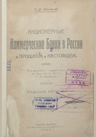 Памфилов, С.Ф. Акционерные Коммерческие Банки в России в прошлом и настоящем / С.Ф. Памфилов; Под ред. Н.Ю.Кислицына. — Нижний Новгород, 1924. — 154 с.: табл.