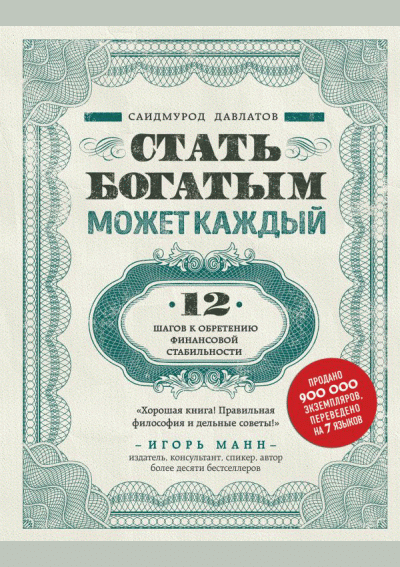 Давлатов, С. Стать богатым может каждый : 12 шагов к обретению финансовой стабильности / С. Давлатов. — Москва : Бомбора, 2019. — 224 с.: ил.. — (Сам себе миллионер). — ISBN 978-5-04-090597-3 : 520.00 р.