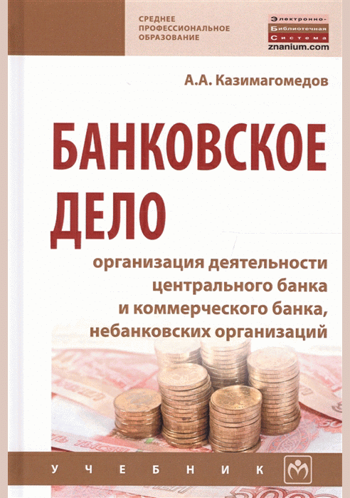 Казимагомедов, А.А. Банковское дело : организация деятельности центрального банка и коммерческого банка, небанковских организаций : учебник / А. А. Казимагомедов. — Москва : Инфра-М, 2018. — 502 с.. — (Среднее профессиональное образование). — ISBN 978-5-16-013890-9 : 1617.00 р.