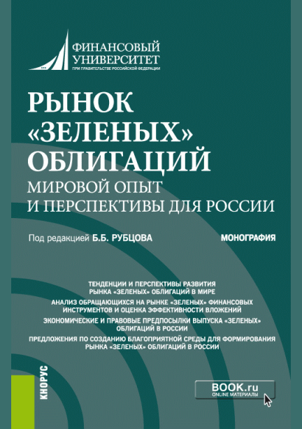 Рынок "зеленых" облигаций : мировой опыт и перспективы для России / Финансовый университет при Правительстве Российской Федерации; редактор Б. Б. Рубцов. — Москва : КноРус, 2021. — 224 с.. — ISBN 978-5-406-08187-7 : 768.90 р.