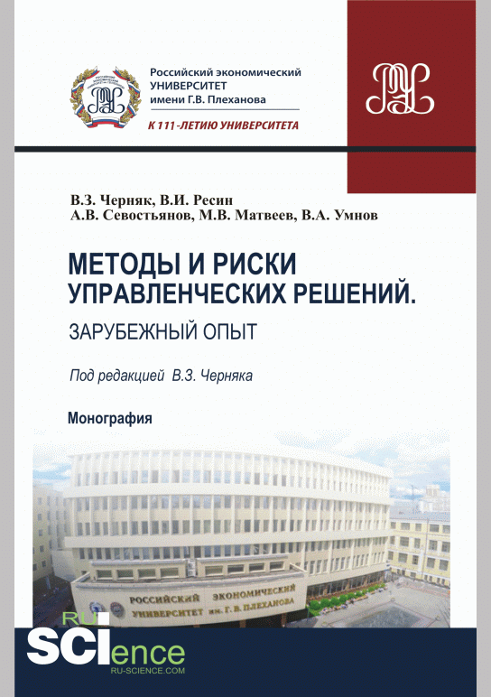 Методы и риски управленческих решений : зарубежный опыт : монография / В. З. Черняк, В. И. Ресин, А. В. Севостьянова [и др.]; редактор В. З. Черняк; Российский экономический университет им. Г.В. Плеханова. — Москва : РУСАЙНС, 2020. — 230 с.: ил., табл.. — ISBN 978-5-4365-2997-4.