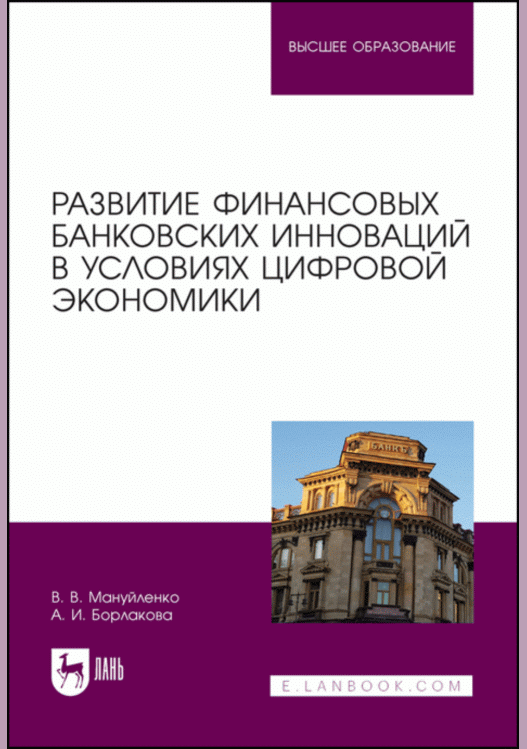 Мануйленко, В.В. Развитие финансовых банковских инноваций в условиях цифровой экономики : монография / В. В. Мануйленко, А. И. Борлакова; редактор В. В. Мануйленко. — Санкт-ПетербургМоскваКраснодар : Лань, 2021. — 266 с.: табл., граф.. — (Высшее образование). — Библиогр.: с. 174-190. — ISBN 978-5-8114-8627-4.