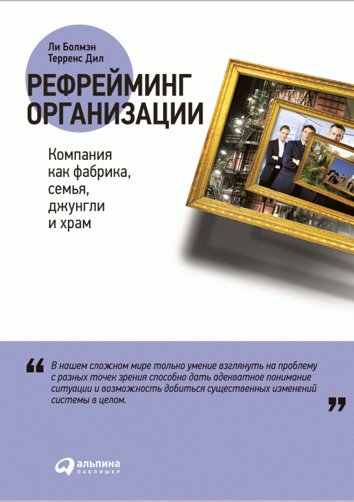 Болмэн, Л. Рефрейминг организаций : компания как фабрика, семья, джунгли и храм : перевод с английского / Л. Болмэн, Д. Терренс. — Москва : Альпина Паблишер, 2020. — 625 с.. — Перевод издания: Reframing organizations: artistry, choice and leadership. — ISBN 978-5-9614-6269-2.