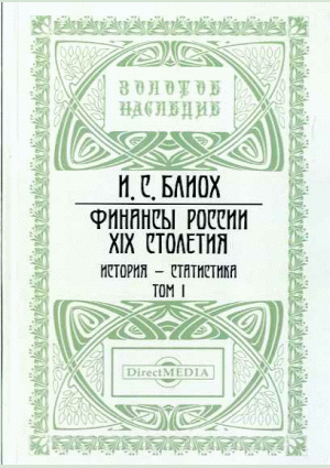 Блиох, И.С. Финансы России XIX столетия. История - статистика. Т. I / И. С. Блиох. — Репр. воспроизведение изд. 1882 г.. — Москва : Директ-Медиа, 2014. — 350 с.. — (Золотое наследие). — . Напечатано по старой орфографии.. — ISBN 978-5-9989-9774-7 : 1080.00 р.