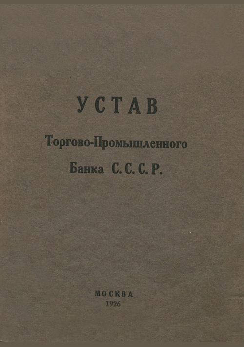 Устав Торгово-Промышленного Банка СССР / Торгово-Промышленный Банк СССР. — Москва : Воен. Тип. Управделами НКВМ и РВС СССР, 1926. — 44 с.