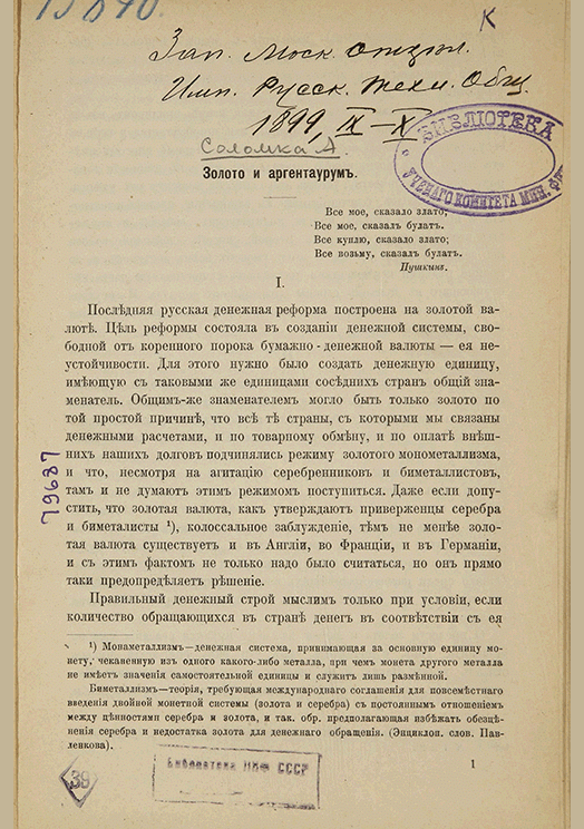 Соломка, А. Золото и аргентаурум / А. Соломка. — Б.м. : Б.и., [1899]. — 41 с.