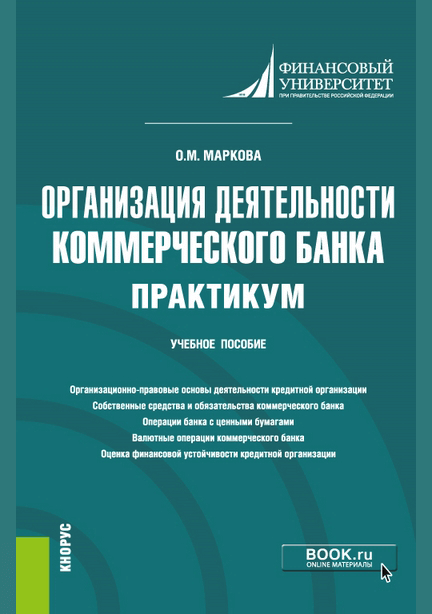Маркова, О.М. Организация деятельности коммерческого банка : практикум : учебное пособие для вузов / О. М. Маркова; Финансовый университет при Правительстве Российской Федерации. — Москва : КноРус, 2021. — 493 с.: ил.. — (Магистратура). — Библиогр.: с. 490-493. — ISBN 978-5-406-05637-0.