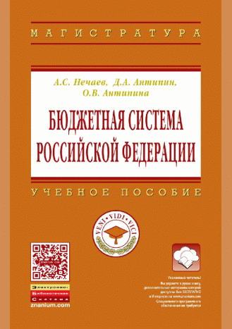 Нечаев, А.С. Бюджетная система Российской Федерации : учебное пособие для вузов / А. С. Нечаев, Д. А. Антипин, О. В. Антипина; рецензенты: М. Ф. Тяпкина [и др.]. — Москва : Инфра-М, 2019. — 266 с.. — (Высшее образование - магистратура). — ISBN 978-5-16-010705-9 : 850.00 р.